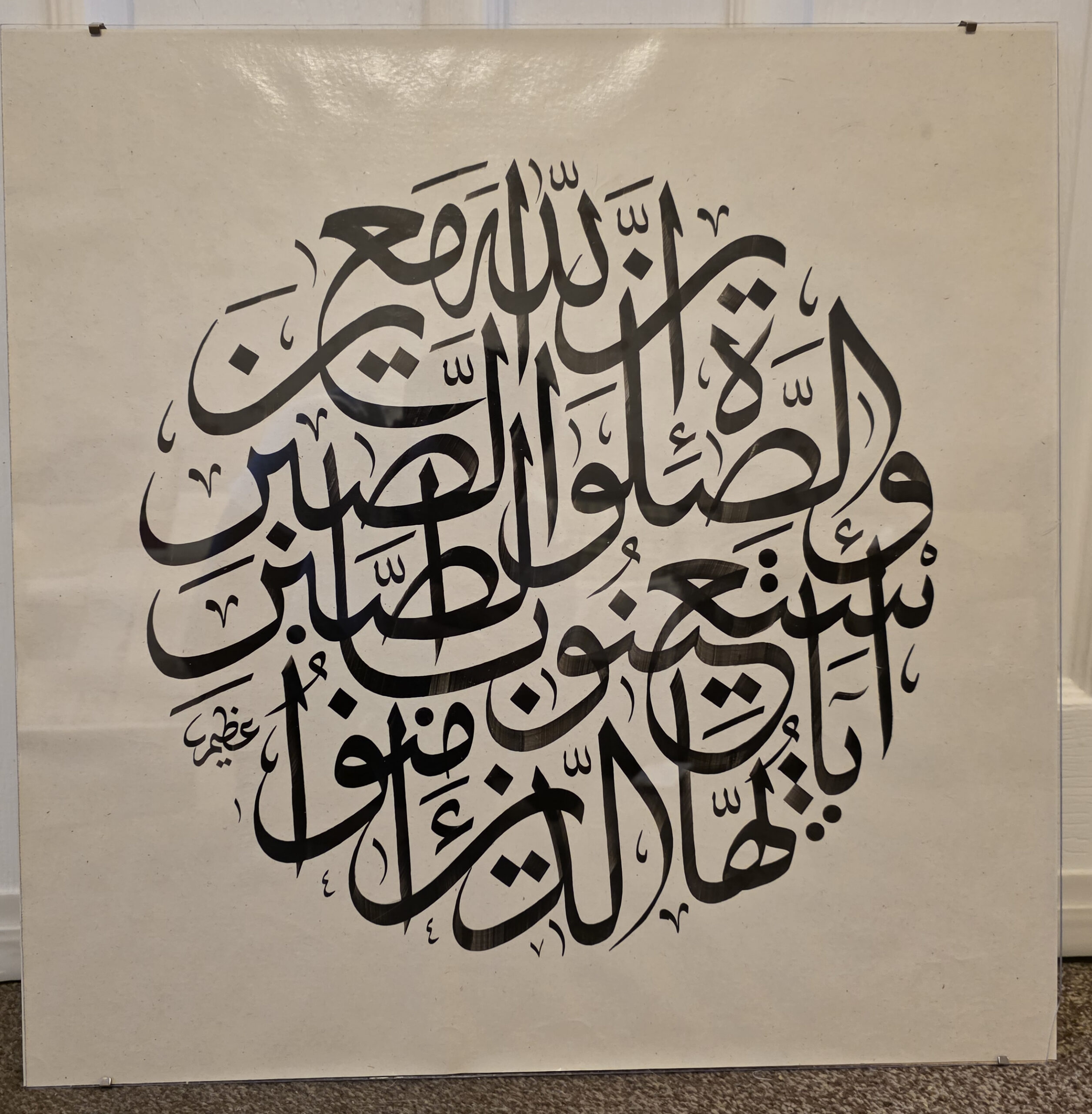 It is written with a 9mm calligraphy pen, and the final artwork is 50x50cm in size. You can purchase a recreation or a print in various sizes and with customisations.