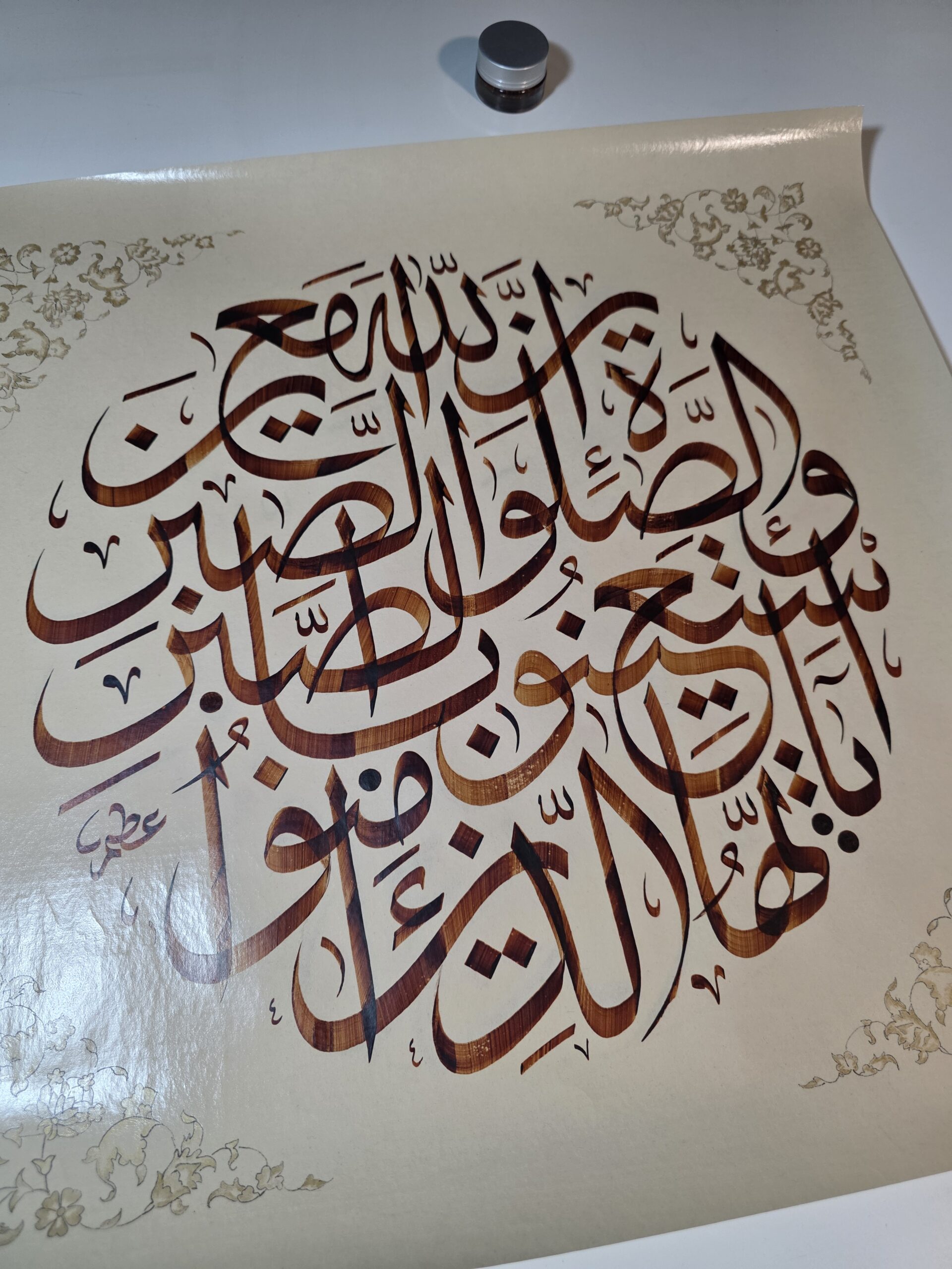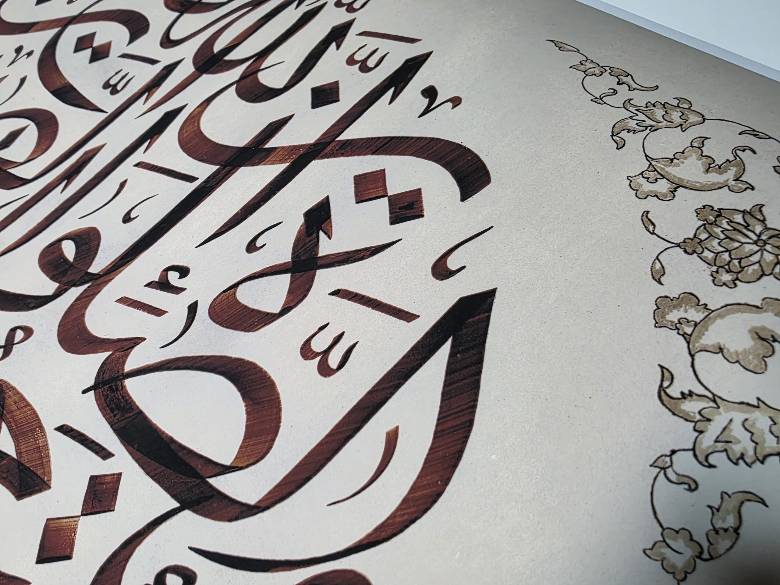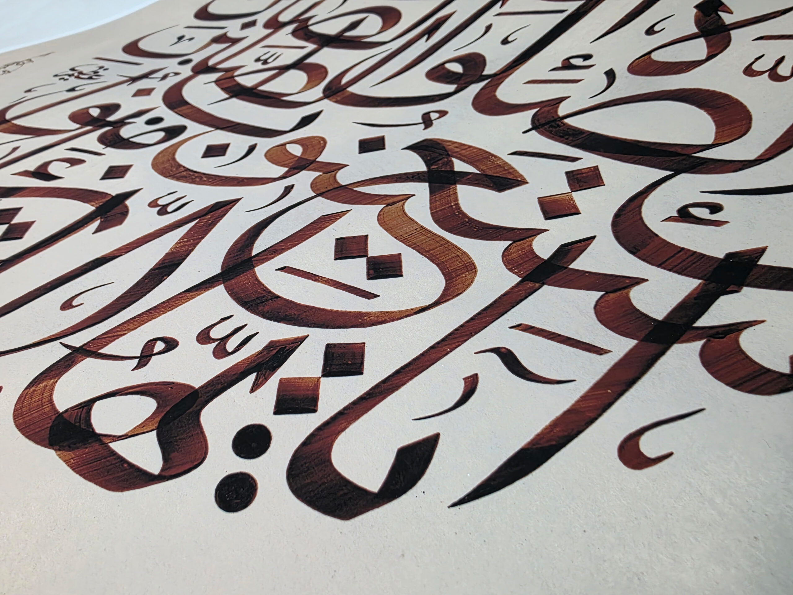 It is written with a 9mm calligraphy pen, and the final artwork is 50x50cm in size. You can purchase a recreation or a print in various sizes and with customisations.