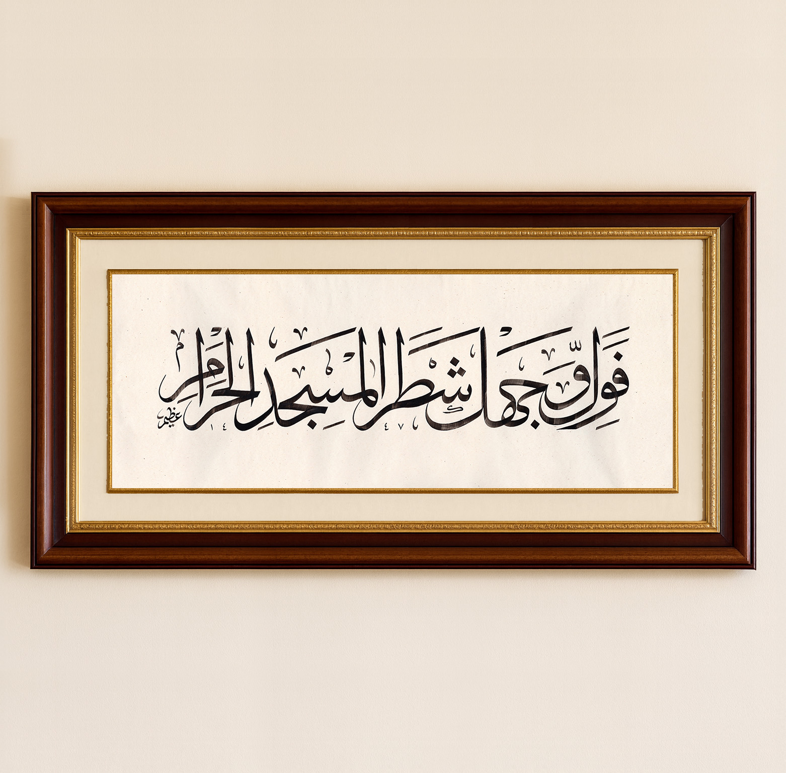 A powerful verse, original artwork by Azim Rehmat Din, completed in 2025. Completed in black ink, on traditional calligraphy paper.